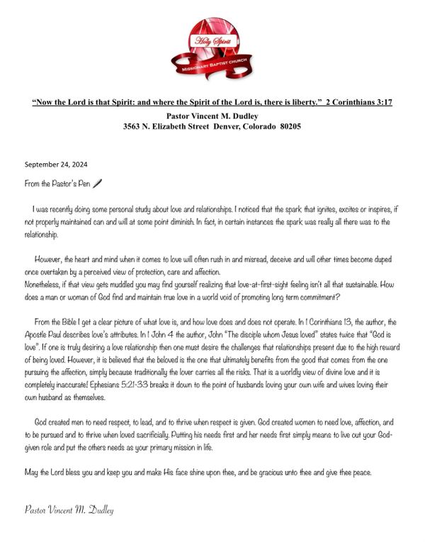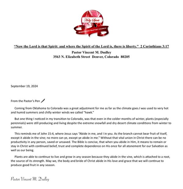 From the Pastor's Pen